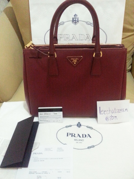NEW PRADA SAFFIANO 33 สีใหม่ล่าสุด สี CHERRY ของจริงสวยมากค่ะ จากช้อปเยอรมัน ราคา 57500 บาท พร้อมใบ เสร็จตัวจริง แคร์การ์ด ถุงผ้า ถุงกระดาษ ยินดีรับชำระด้วยบัตรเครดิตค่ะ สนใจติดต่อ 089 743 3332