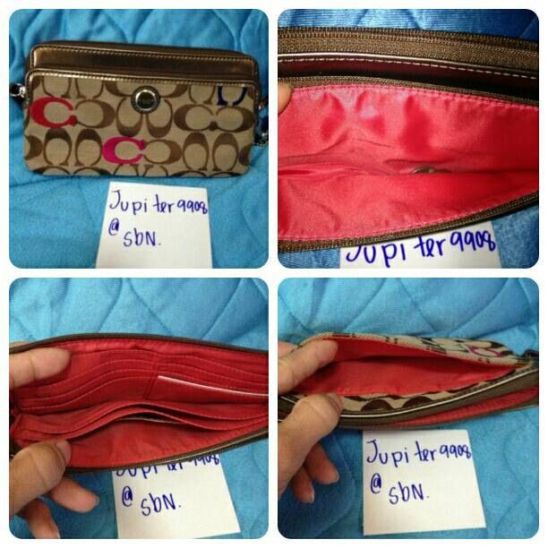 coach47987 กระเป๋าสตางค์ใบยาว มีสายคล้องมือ ช่องเยอะ ใส่โทรศัพท์ได้ค่ะ ใช้ไป1ครั้ง ไม่มีตาหนิ ไม่เลอะ เหมือนใหม่ ป้าย การ์ด ครบ ราคา2300