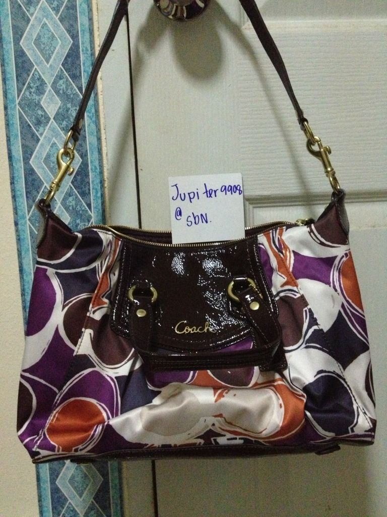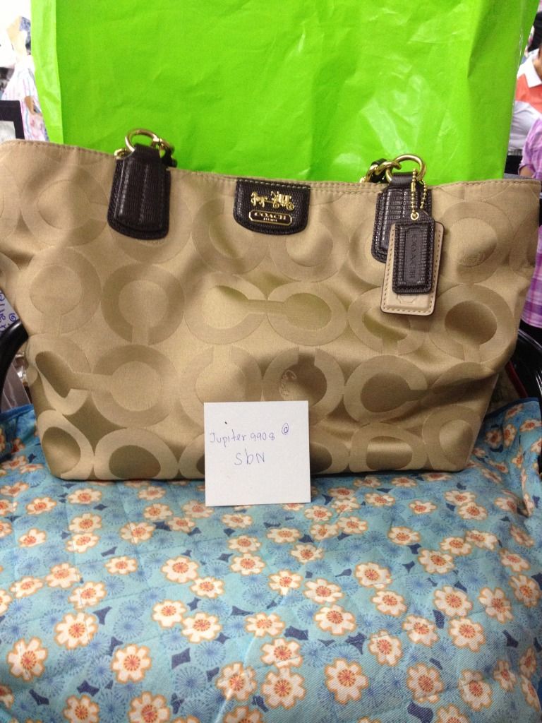 coach20481 used ราคา5900 มีรอยหยดน้ำ นิดนึงไม่มีผลต่อการใช้งานค่ะ มีตัวกป กับ ถุงผ้านะคะ