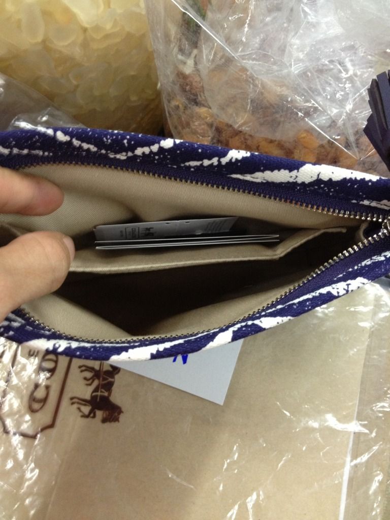 coachคลัช มีสายคล้องมือ ข้างในมีช่องใส่บัตร ใส่มือถือและของจุกจิกได้ ชนชอป สีจริง น้ำเงินอมม่วง ราคา3200