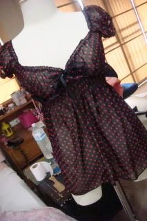 1.ใหม่ค่ะ ซื้อจากHK เป็น เสื้อชีฟอง สีดำ แดง ลายจุด
