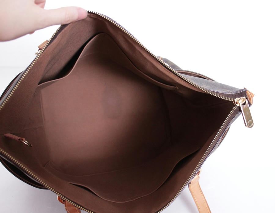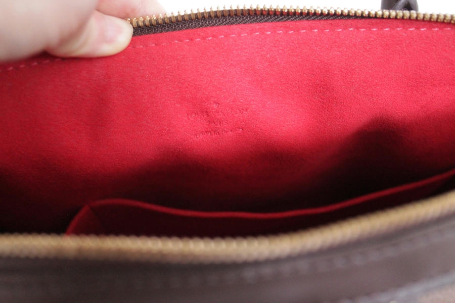 มีเลอะสีชมพูจางๆที่ตัวกระเป๋าด้านนอก แต่มองแทบไม่เห็นค่ะ ตรงหัวซิบLVมีรอยถลอกเล็กน้อยตามรูปค่ะ และก็ด้านในเลอะฝุ่นค่ะแต่ไม่มีรอยปากกาหรือรอยขีดข่วนใดๆ สายเริ่มเปลี่ยนสีเข้มขึ้นตามรูปค่ะ ตัวกระเป๋าเริ่มออกเหลืองตามรูปค่ะ สภาพประมาณ70%