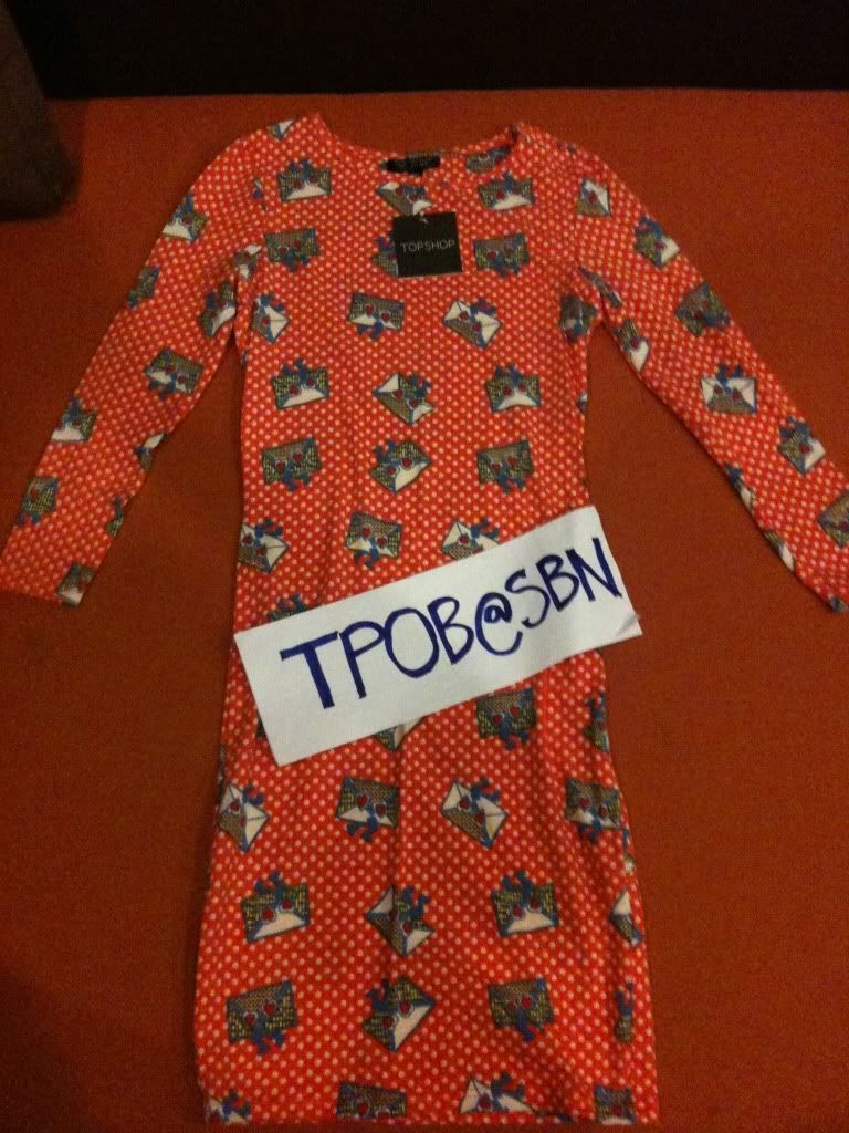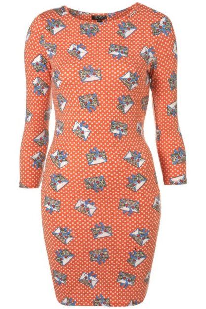 T18 TOPSHOP เดรสผ้ายืดสีส้มลายจดหมายแบบอั้ม