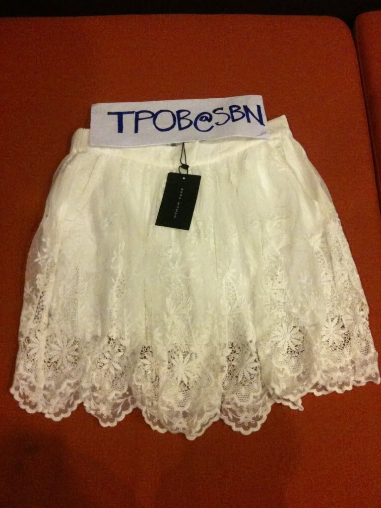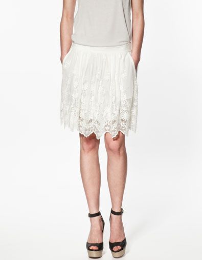 T21 Zara กระโปรงลูกไม้ปักสีขาวแบบชมพู่