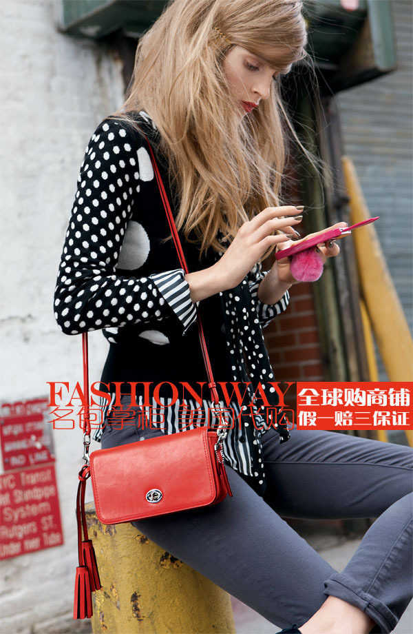 กระเป๋า COACH Legacy Weekend Ticking Stripe Medium Swingpack F49249 กระเป๋าสะพายน่ารัก ๆ สีชมพูแดง 3000 รวม EMS