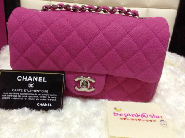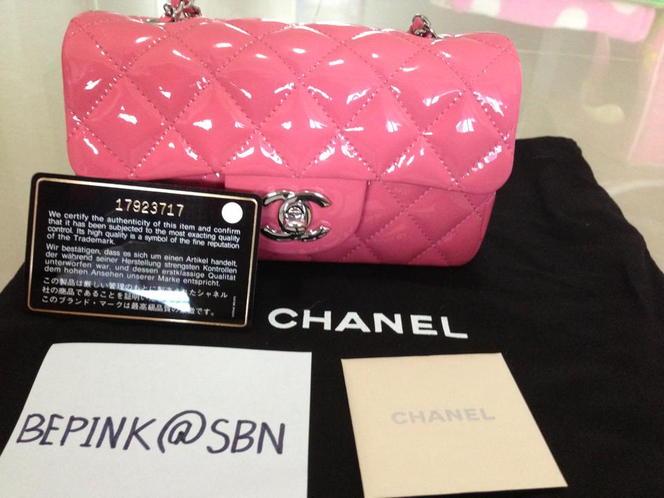 Chanel mini 7"sac in Hot pink Patent Silver Chain sold บาท