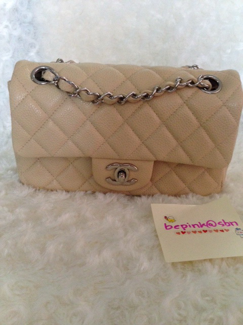 used chanel mini 8" caviar beige 4 รู หายากนะคะเพราะปกติตอนนี้8"ผลิตแค่2รู สามารถสะพายcross body หรือสะพายโซ่คู่ได้ สภาพใหม่ สวย คุณหนูมากๆ ไม่มีมุมถลอก มีขีดนิดนึงตามภาพ ต้องซูมให้ดูเพราะมันเล็ก นอกนั้นไม่มีที่ติคะ ใช้งานน้อยมากhologram 15xxxx ขอรูปเพิ่มได้คะ ราคา sold บาท