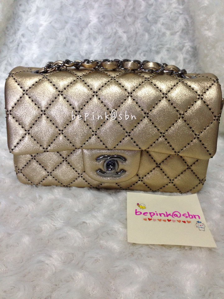 new chanel mini 8" calfskin gold ของซีซั่นนี้นะคะ 14c เป็น limited สวยมากคะ ในรูปว่าสวยแล้วตัวจริงเกินประยายเลย ไซส์นี้หายากมาก สะพายแล้วดูหรูสุดๆ หรือสะพายออกงาน เป็นทองที่สวยมากจิงๆคะ เป็นหนังcalfskinซึ่งทนกว่าหนังแกะนะค ราคา 91,500 บาท sold 1 ใบ มาเพิ่มอีก 1 ใบ