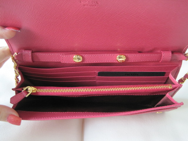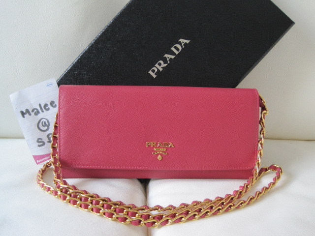 [size=+3]New!! Prada Wallet on chain ( Peonia ) ชมพูเข้มค่ะ สียอดฮิต สายเป็นโซ่ และถอดออกเป็นกระเป๋าตังค์หรือเป็นคลัชก็ได้ ใส่การ์ดได้ 6ใบค่ะ และช่องซิปและช่องอื่นๆ crossbodyได้ค่ะ น่ารักน่าใช้มากมาย มีพร้อม การ์ด กล่อง ครบค่ะ ขาย 23,900[size=+3]Super Sale 22,500 net