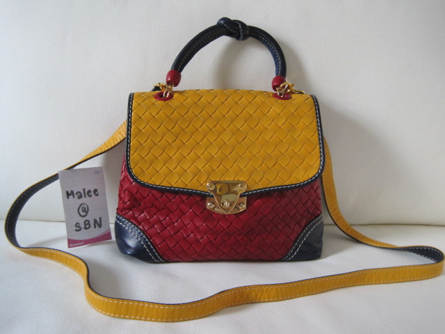 [size=+3]Used like new bottega Venetta tri-color Size 10"x8"X2.5" สายยาว 49" vintage bagน่ารักและสีสวยสดมากๆค่ะ หายากไม่ธรรมดาค่ะรุ่นนี้ สามารถถือได้พร้อมหูหิ้วและสะพายยาวได้ แบบcrossbodyได้เลยค่ะ แทบจะไม่มีตำหนิ หนังนุ่มเบา ภายในช่องเยอะ จุของมากมาย พร้อมถุงผ้า ขาย 45,000