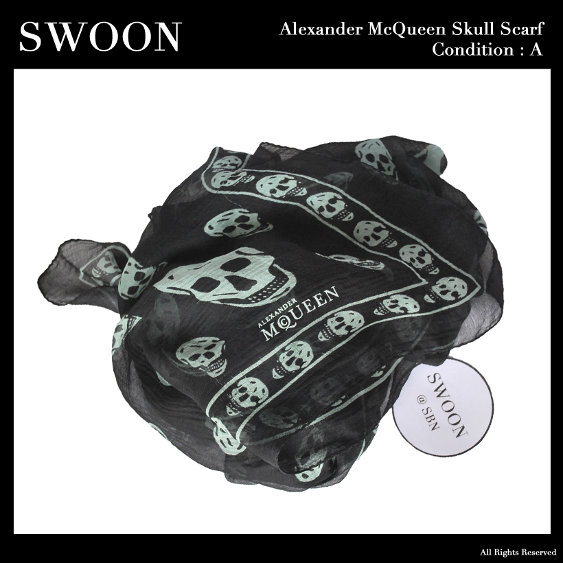 USED: Alexander McQueen Skull Scarf in Mint/Black