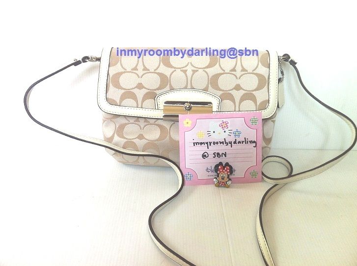 6.กระเป๋า COACH 48983 Kristin Signature Sateen Flap Crossbody ราคา sold out ฟรี EMS