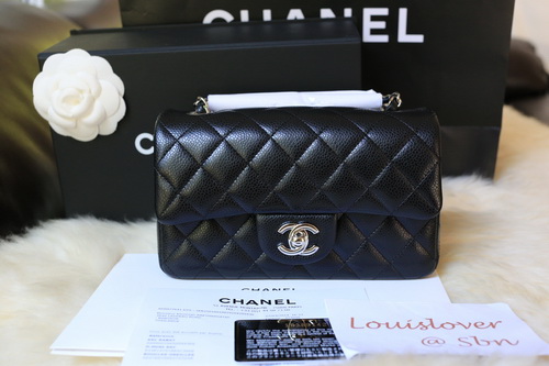 NEW : CHANEL MINI BLACK CAVIAR 8" SHW