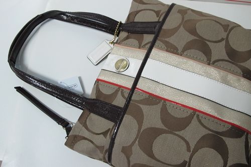 COACH Signature Stripe Framed Carryall Tote # 13533 (sold out)