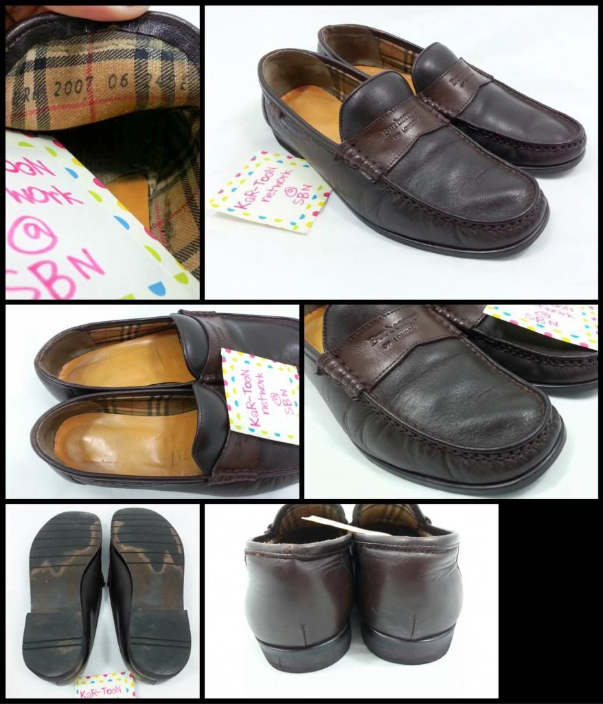 @ (Used) รองเท้าหนังผู้ชาย Burberry London ไซส์ 6-6.5 US สภาพ 90% เท้าที่ใส่ได้ประมาณ 39-40 ตัวทำด้วยหนังสีน้ำตาลเข้ม คาดด้วยหนังสีน้ำตาลอ่อน ยังดูใหม่มากครับ ป้ายแบรนด์ชัดเจน ภายในสะอาด พื้นรองเท้ามีสีเปลี่ยนเล็กน้อย แต่พื้นไม่สึกนะครับ