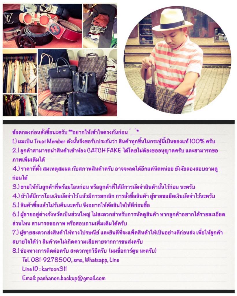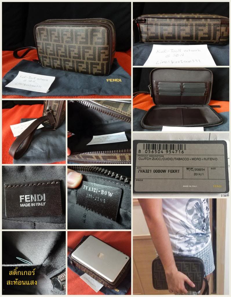 (Used like new) กระเป๋าครัช Fendi สภาพ 95% วัสดุทำดัวยหนังผสม canvas ลาย signature ตกแต่งด้วยหนังแท้ แบ่งออกเป็น 2 compartment ส่วนแรกมีช่องใส่การ์ด และธนบัตร ในส่วนที่สองใส่ของกระจุกกระจิก ได้เยอะ และสามารถใส่ ipad mini ได้พอดี สามารถใช้ได้ทั้งผู้ชาย และผู้หญิง อุปกรณ์มี ถุงผ้า มีรูปสำเนาของการ์ด (ทำการ์ดจริงหาย) สามารถนำไปตรวจสอบได้ที่ช้อปครับ ซื้อมา 32,000 บาท เนื่องจากเป็นใบที่ไม่ค่อยได้ใช้ จึงขอนำมาปล่อยที่ 19,000 บาท ส่ง EMS ให้ฟรีครับ
