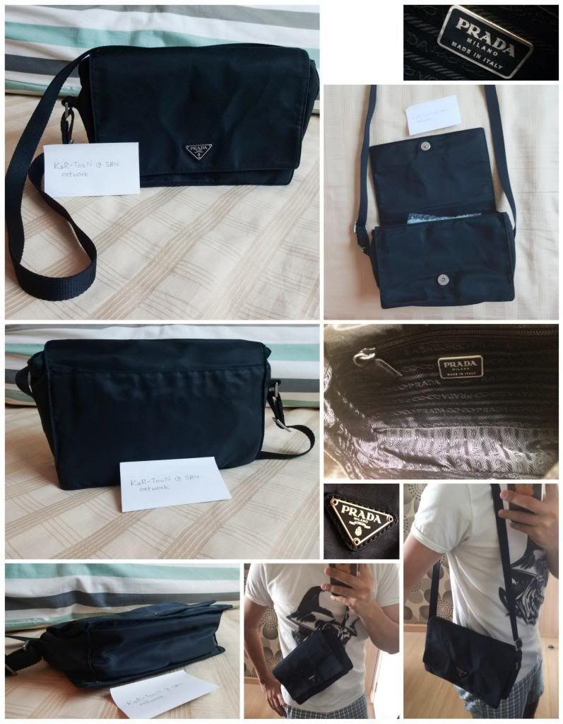 (Used) Prada bag สภาพ 85% วัสดุทำด้วยผ้าไนลอน สะอาดทั้งนอกและใน เป็นทรงสวย ป้ายแบรนด์ชัดเจน มีรอยขนแมวจางๆ จุของได้พอสมควรครับ