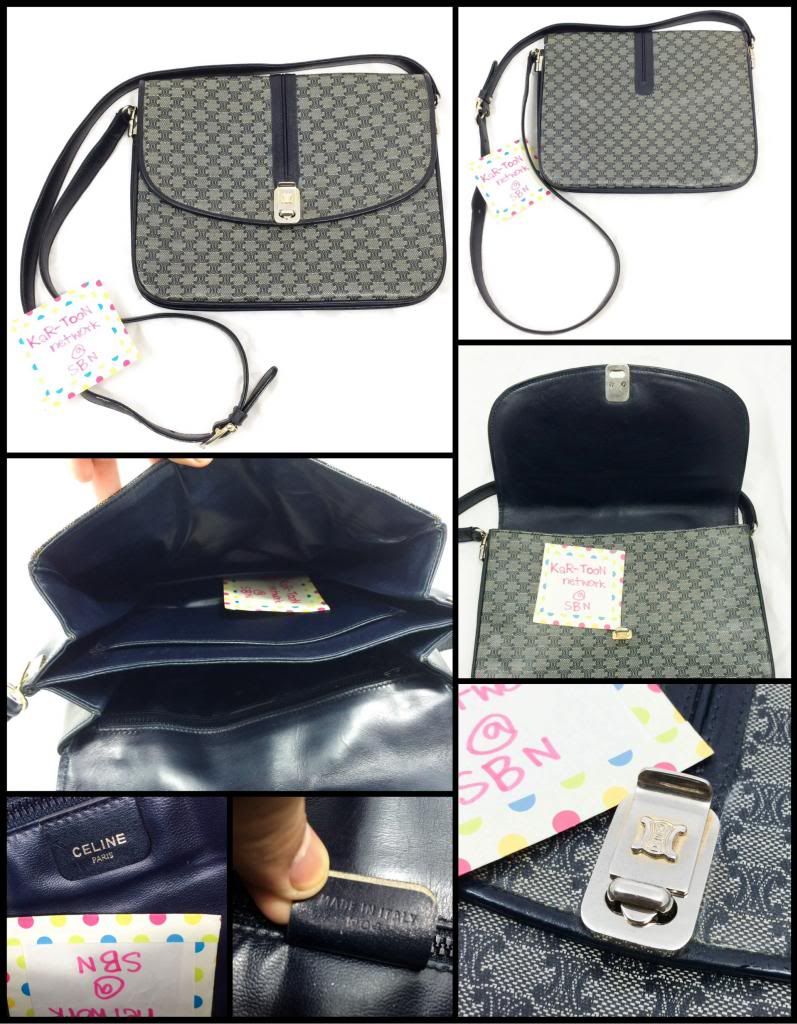 (Used) Celine crossbody bag เป็นรุ่นวินเทจ สภาพ 85%+++ วันดุทำด้วย pvc เย็บขอบด้วยหนัง สีน้ำเงินเข้ม อะไหล่ทองซีดลงแต่ยังคงเงาวิ้ง สายสะพายทำด้วยหนัง มีถลอกเล็กน้อยตามสภาพมือสอง ภายในสะอาด สวยมากครับ ขนาดกระเป๋า 24x19x10 เซ็นติเมตร