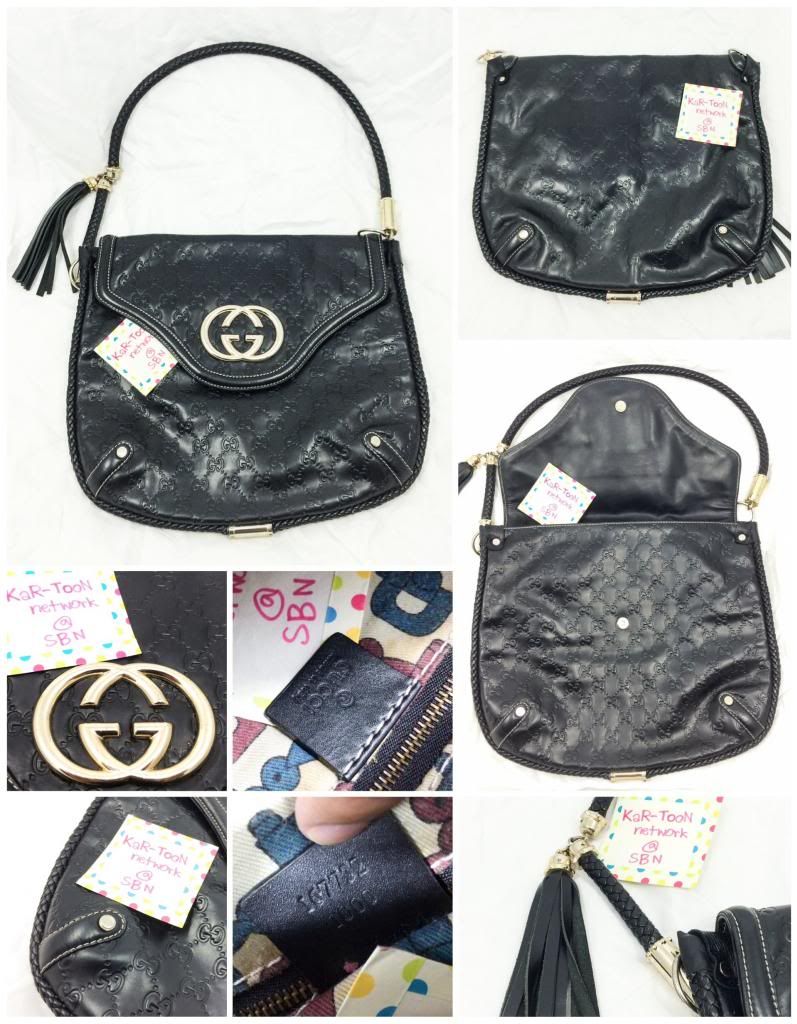 (Used) Gucci bag เป็นรุ่นวินเทจใบใหญ่ สภาพ 85%+++ วัสดุทำด้วยหนังแท้ทั้งใบ ปั้มลาย หูกระเป๋าทำด้วยหนังสานทนทาน อะไหล่มีถลอกบ้างเล็กน้อยตามสภาพมือสอง ภายในบุด้วยผ้าลาย gucci มีคราบบริเวรณซิป ซึ่งไม่มีผลต่อการใช้งาน ขนาดกระเป๋า 36x30x1 เซ็นติเมตร