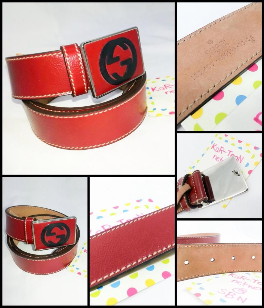 @ (Used) เข็มขัด Gucci belt สีแดงเข้ม สภาพ 90% ไซส์ 85 สำหรับเอวสูงสุด 34 นิ้วครับ หัวทำด้วยหนังเย็บติดลงบนอะไหล่โลหะ สายทำดัวยหนังสีแดงเข้ม มันวาว ในภาพจะดูสดไปนิดหน่อย ยังสวย และสะอาดมาก