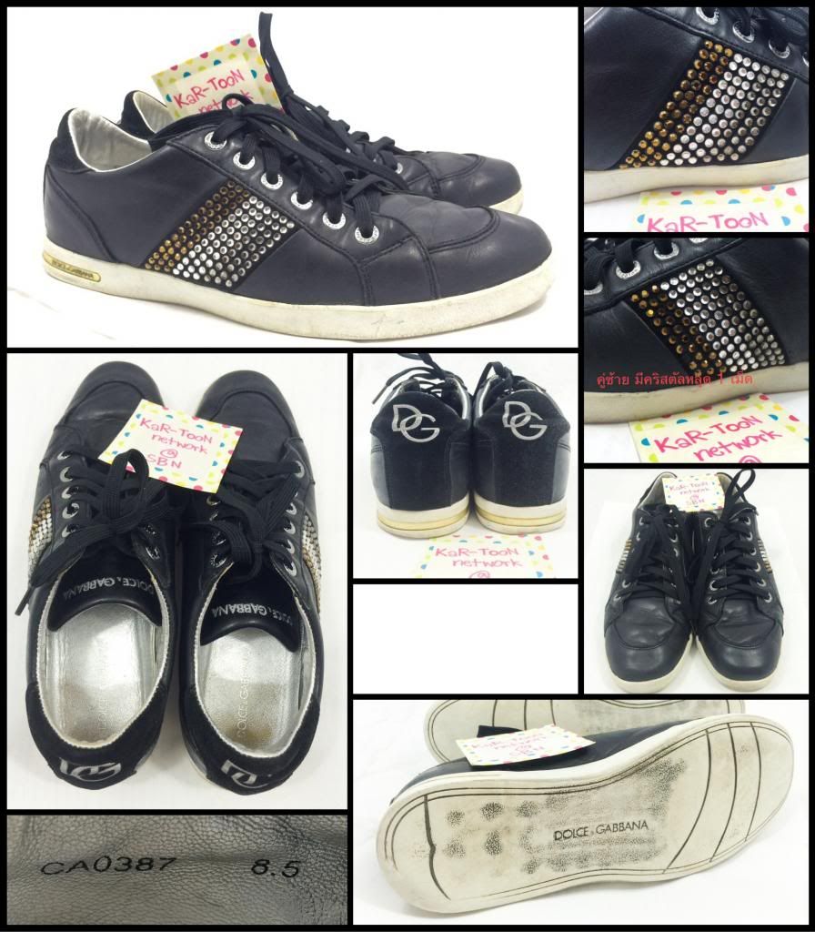 @ (Used) รองเท้า D&G ไซส์ 8.5 US หรือเท้าประมาณ 41-43 สภาพ 85% วัสดุทำด้วยหนังแท้สีดำ ประดับด้วยคริสตัล สวยมากครับ ไม่มีตำหนิขาดใดๆ มีเพียงคริสตัลข้างซ้ายหลุด 1 เม็ด และมีร่องรอยจากการใช้งานมาบ้าง แต่โดยรวมยังสมบูรณ์อยู่มาก