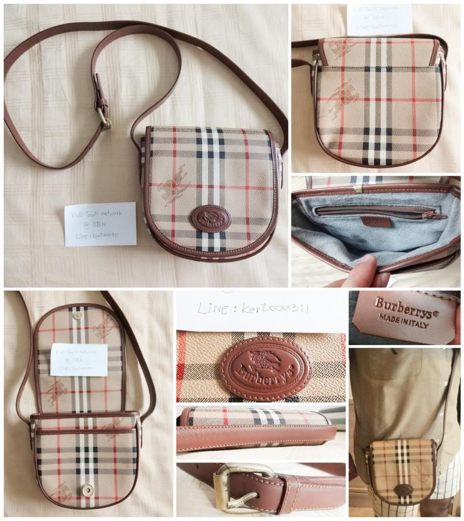 (Used) Burberry crossbody bag made in Italy สภาพ 85%+++ ตัวกระเป๋าทำด้วย Canvas สายหนังสภาพดีมาก อะไหล่ทองมีถลอกเล็กน้อย ภายในบุผ้าสำลีสะอาดดี ขนาดกระเป๋าไม่ใหญ่ สามารถใส่กระเป๋าเงิน โทรศัพท์ และของกระจุกกระจิกได้ ขาย 4,900 บาท พร้อมโอนลดเหลือ 3,500 บาท