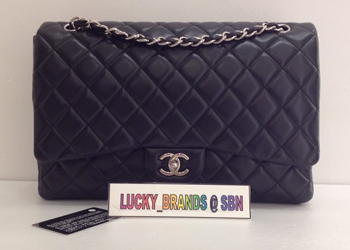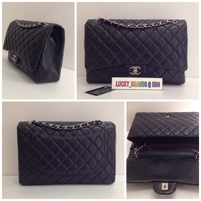-New Chanel classic Jumbo12" in navy blue caviar shw holo18xsold