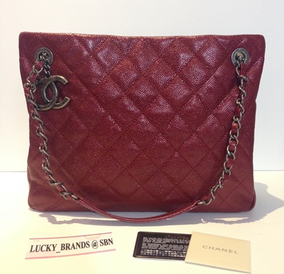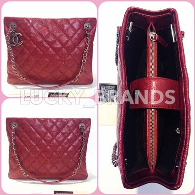 NEW CHANEL Time;ess Tote in Red Caviar Metallic holo17