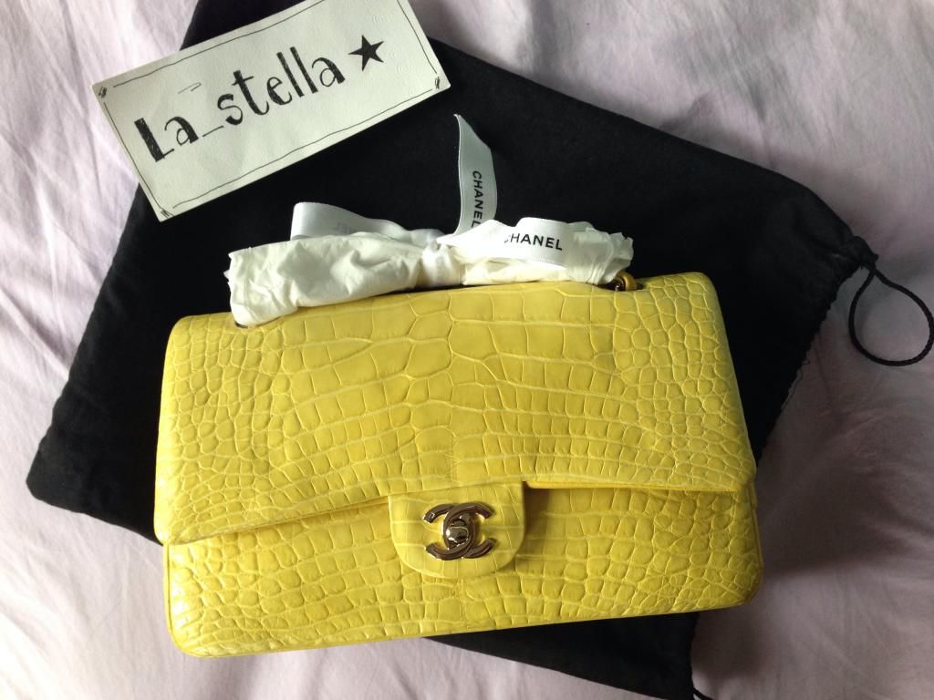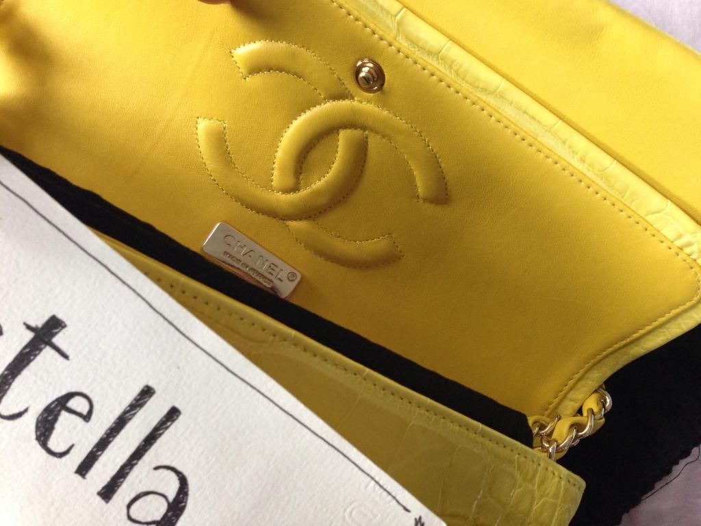 3. CHANEL 10" BRIGHT YELLOW CROCODILE , DOUBLE FLAPS with Light gold hardware ---- VERY RARE ITEM!! EXCELLENT CONDITION!