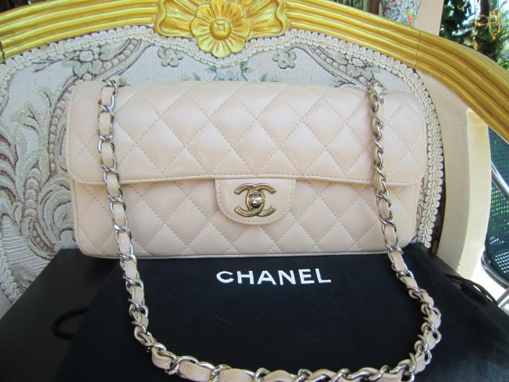 12.CHANEL EAST WEST 10" สีเบจโซ่เงิน สภาพสวยมากใหม่มากๆไม่มีตำหนิ ไม่ลอก ไม่ถลอก อุปกรณ์ครบ