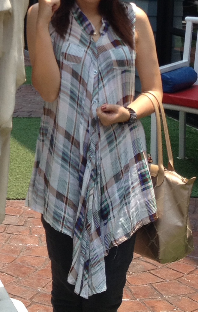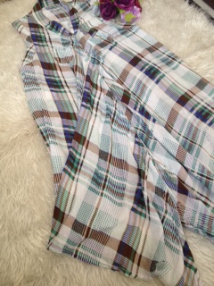 เสื้อแขนกุดลายสก๊อต ด้านหน้าจับทิ้งๆ ซื้อมาจากเกาหลี สภาพดีค่ะ
