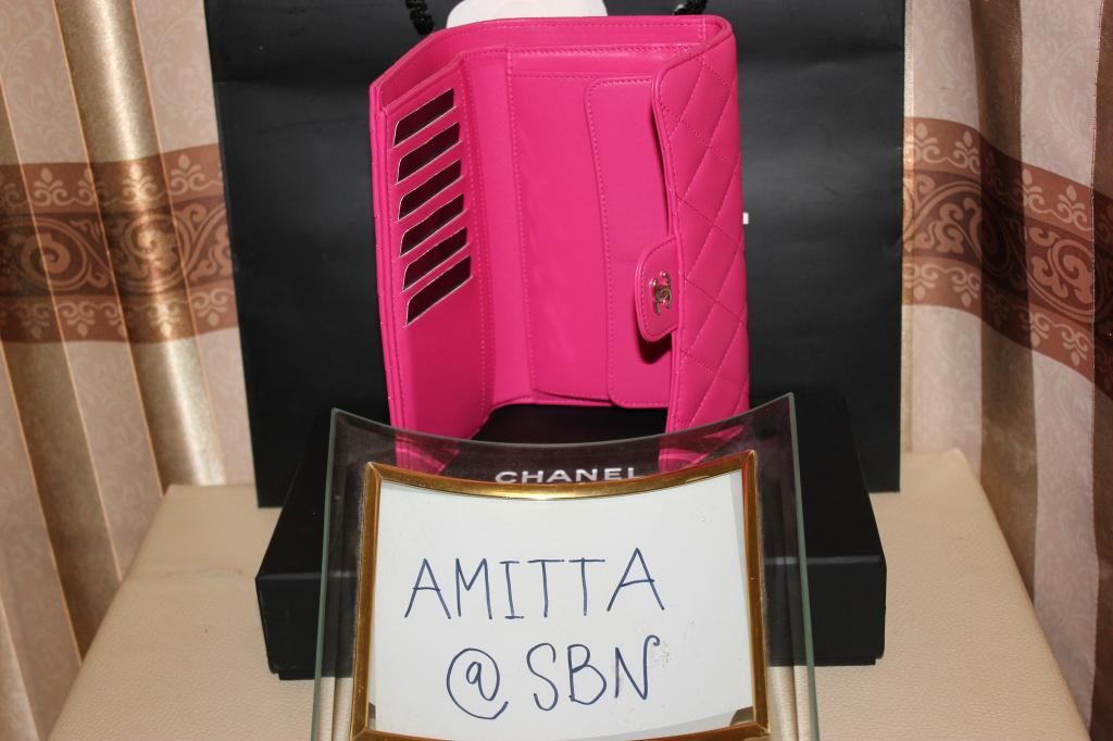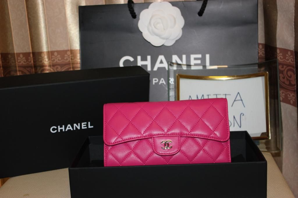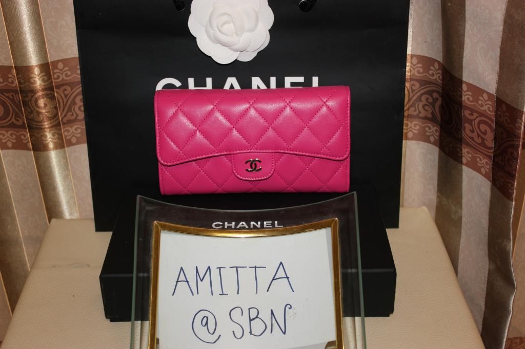 Used like Chanel Wallet แบบสามพับ สีของซีซั่นใหม่ล่าสุด จาก Shop ฝรั่งเศส ซื้อวันที่ 5/06/2014 อุปกรณ์ครบค่ะ ถุง ถุงผ้า กล่อง ดอก อยู่ครบค่ะ มันใหม่จริงๆ