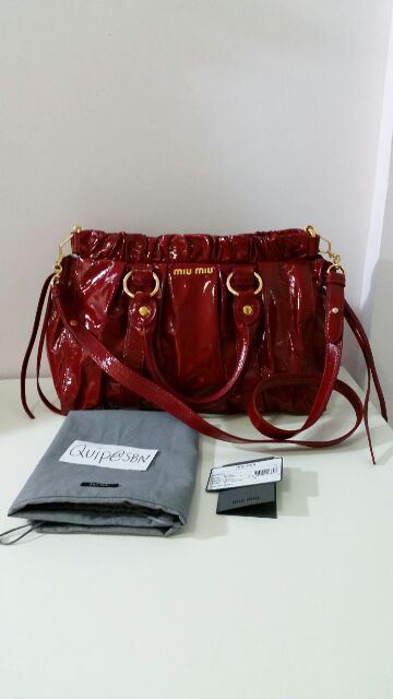 Miu Miu Vitello Lux สี Rubino ขนาด 13"x5"x9" สายยาว 38" สภาพเหมือนใหม่ อุปกรณ์มีถุงผ้าและการ์ดค่ะ