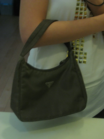 2. Prada ใบเล็ก สีเขียวขี้ม้า เอาไว้ใส่เป๋าตังค์กะมือถือไปกินข้าวเที่ยงค่ะ อิอิ ขาย 1,950 บาท --> ลดเหลือ 1,800 บาท