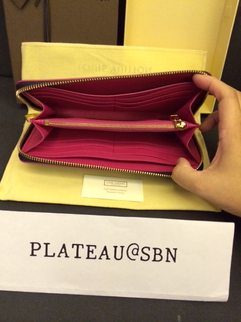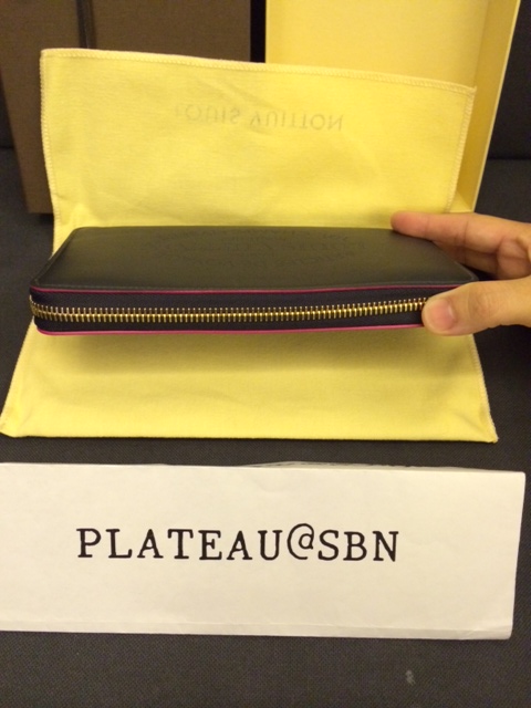 8. BRANDNEW: Louis Vuitton Zippy Wallet รุ่นใหม่ล่าสุด Goatskin in Black color with Fucshia trim and lining