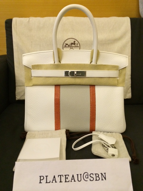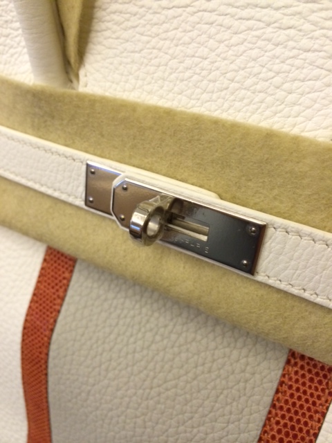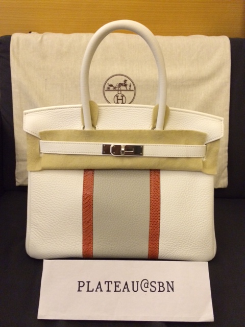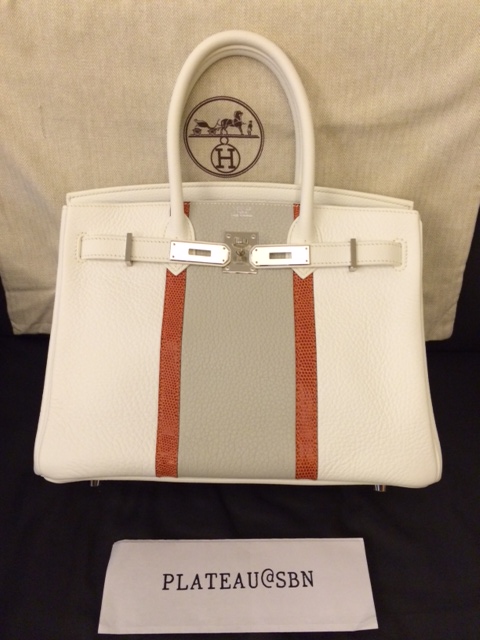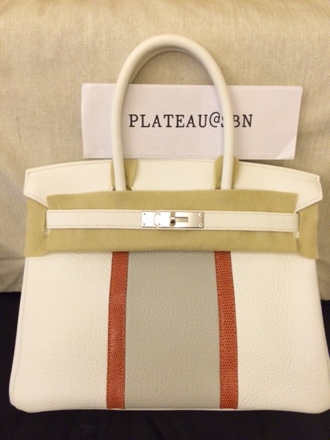 2. Brand new (Unused): Hermes Birkin 30 cm / Club / White & Gris Pearl & Sanguine Lizard colors / Clemence & Lizard leathers / Palladium Hardware / Stamp O