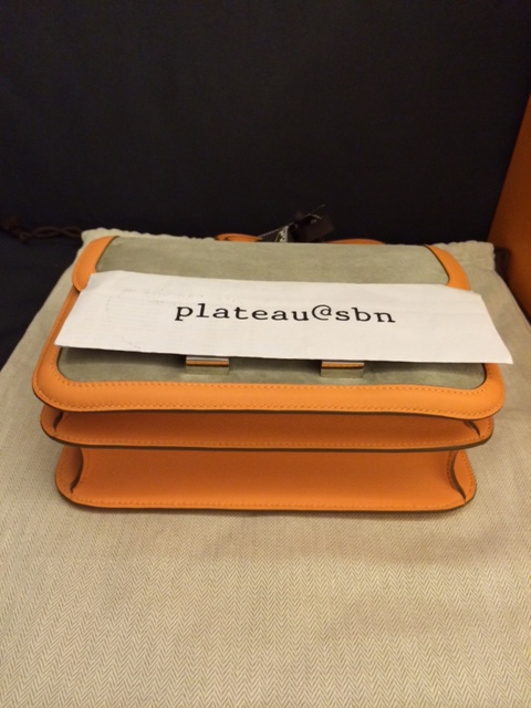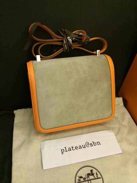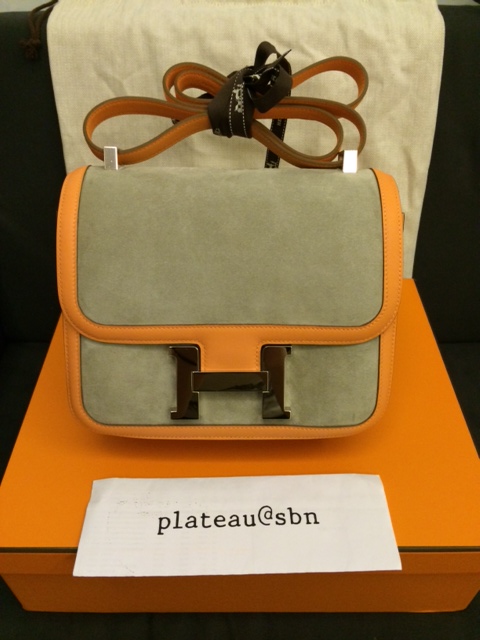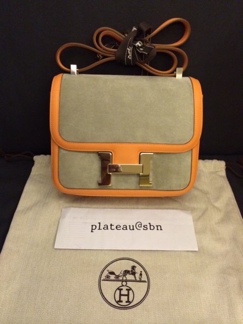 3. Brand new: Hermes Constance 24 cm / Crevette & Gris T colors / Swift & Suede leathers / Palladium Hardware / Stamp R
