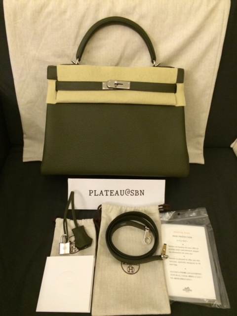 1. Brand new: Hermes Kelly 32 cm / Olive color / Togo leather (ใบนี้หนังสวยมากค่ะ very nice grain) / Palladium Hardware / Stamp R