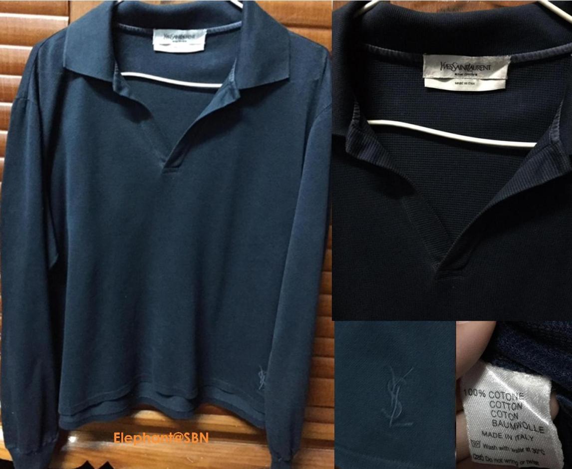17 เสื้อ YSL สีน้ำเงินเข้ม สภาพผ่านการใช้งานพอสมควรค่ะ ไม่มีรอยขาดนะค่ะ ขาย 1,300 บาทค่ะ