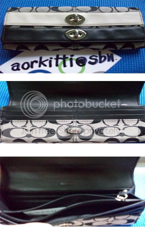 กระเป๋าตังCoach แบบยาวประมาณ 4”x7.5” มีช่องใส่บัตร 13 ช่อง ช่องซิบใส่เหรียญ ช่องใส่แบงค์ ช่องใส่สมุดเช็คถอดออกได้ ลายกราฟฟิกCoach น้ำตาล วัสดุเป็นผ้า และหนัง ขาย 4,500 บาท