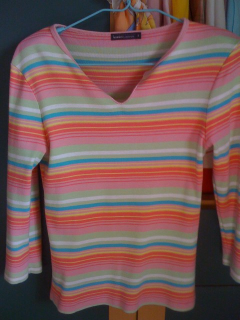 เสื้อแขนยาวลายขวาง สีลูกกวาดค่ะ ไซด์ S สภาพใหม่เช่นกันค๊า ขาย 400 บาทค่ะ