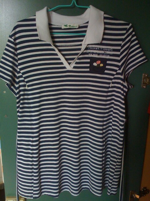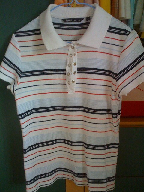 เสื้อคอโปโล ลายขวาง สีฟ้าสดใสค่ะ ไซด์ XS แต่ไม่เล็กมาก พอๆกับไซด์ S อ่ะคะ สภาพดีค่ะ ตรงปกจะมีจุดเหลืองๆนิดนึง เนื่องจากเก็บไว้นาน ไม่ได้ใส่ค่ะ ขาย 250 บาทค่ะ