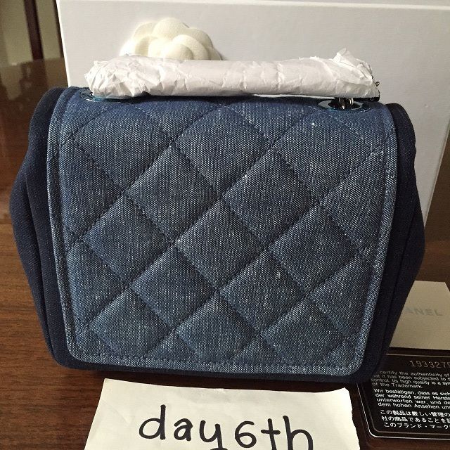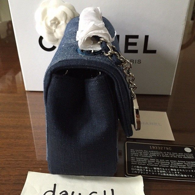 NEW CHANEL Mini 7" Square Two-Tone Denim SHW with Charm ใหมเอี่ยมค่ะ Holo 193 เก็บอย่างเดียวไม่เคยใช้ รอยถลอกขาวๆเป็นดีไซน์ของรุ่นนี้นะคะ ไม่ใช่ตำหนิจากการใช้งาน อุปกรณ์มีกล่องกระดาษ ถุงผ้า การ์ดโฮโล แคร์การ์ด ริบบิ้น ดอกคามิเลียค่ะ ไม่มีใบเสร็จนะคะ SOLD
