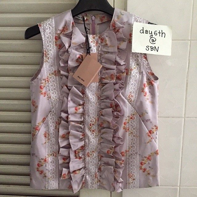 NWT Miu Miu TAFFETAS CHINE Ruffle Silk Top Sz. IT36 (XS) Collection ล่าสุด Spring-Summer 2015 Runway Item! สี Lilac คนใส่ไซส์ US0-2 ใส่ได้ค่ะ รอบอก 33 นิ้ว ใหม่ป้ายห้อย SALE 17,500 บาทค่ะ (Pre-order มา 2x,xxx บาทค่ะ)