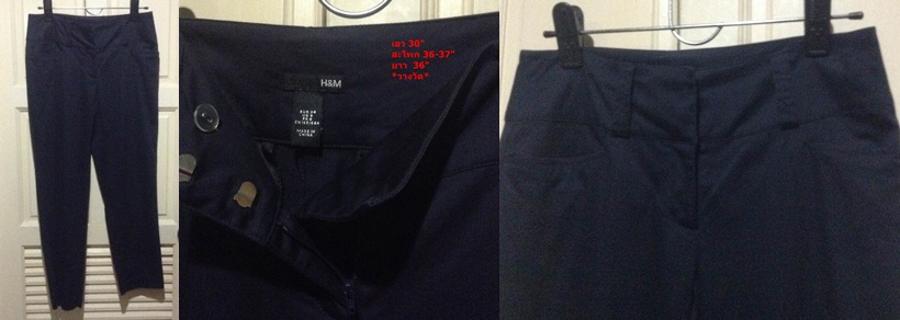 7***2Hand***H&M size 6US/36EUR กางเกงผ้า สีน้ำเงินเข้ม ทรงสวย สั่งจากเวบ เอว 30" สะโพก 36-37" ยาว 36" SALE 180 มีเข็มขัดให้ด้วยคะ