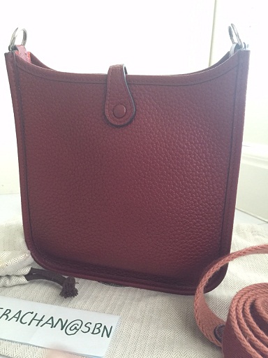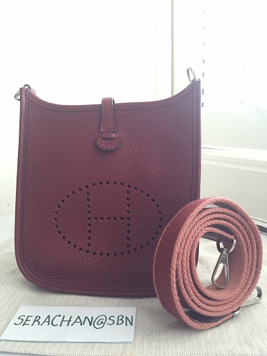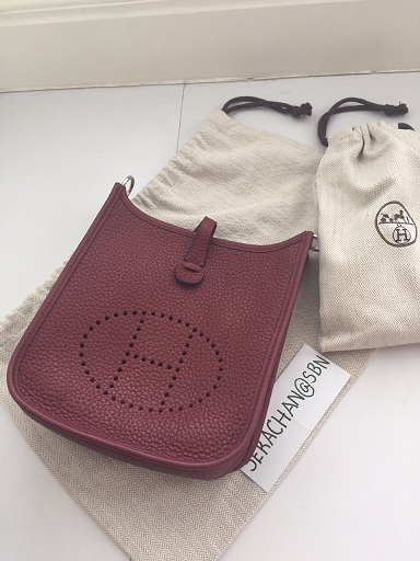 Like New Hermes Mini Evelyn Rouge H Clemance PHW Stamp Q อุปกรณ์ ถุงผ้า สายสะพาย (ไม่มีกล่อง) ไม่มีตำหนิ ราคา 49,000 บาท