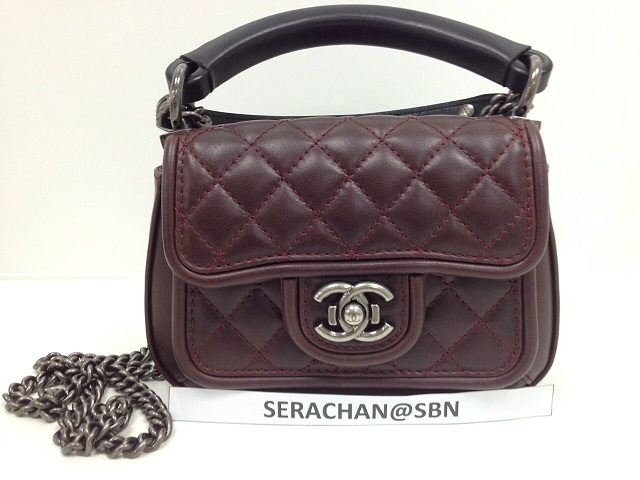 New Chanel sac A'Rabat small quiled flab bag with rigid handel calfskin Season S2015 (Size 22x19x10cm.) สี Burgundy น่ารักมากค่ะ