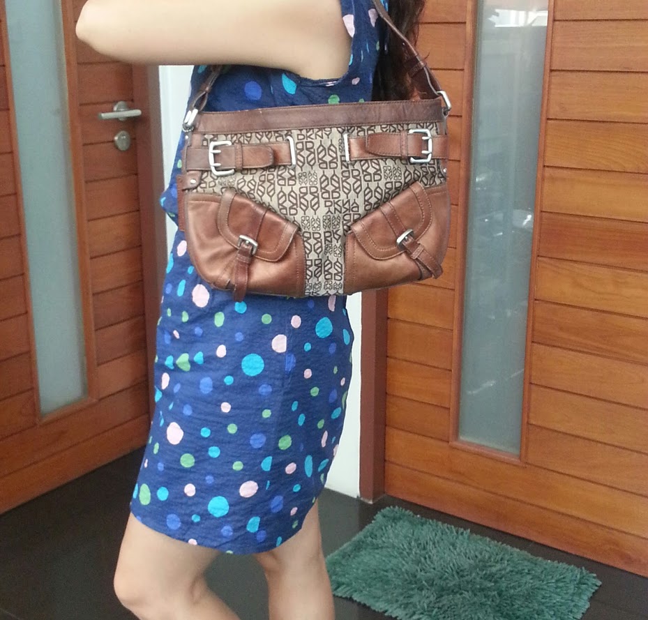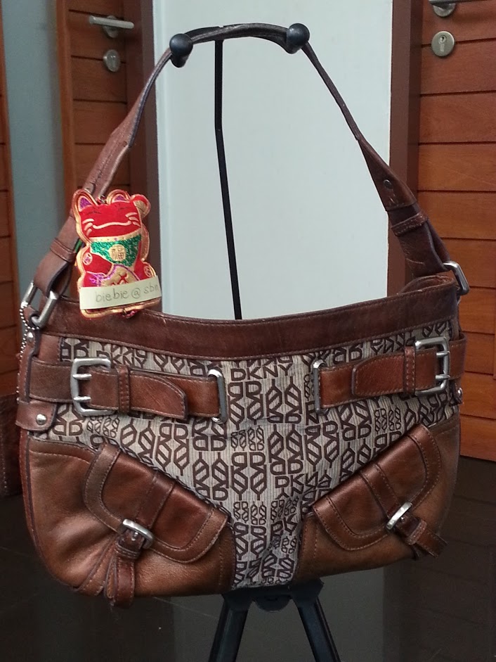 DKNY ผ้าผสมหนังแท้ อะไหล่เงาหวับ ขนาดฐานกว้าง 30ซม