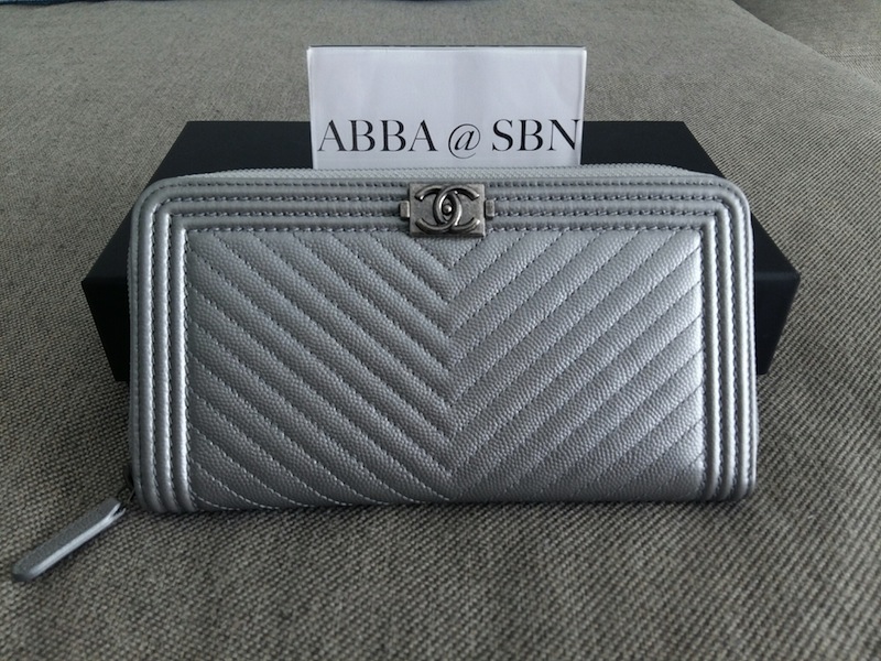 2.New Chanel Chevron Zippy Long Wallet, Silver Caviar อุปกรณ์ครบ 38,700 บาท