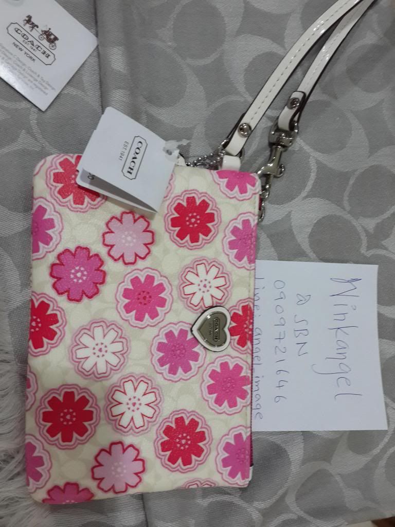 COACH Rose leather wristlet หนังแท้สีสวย ราคาSOLDฟรีส่งEMS